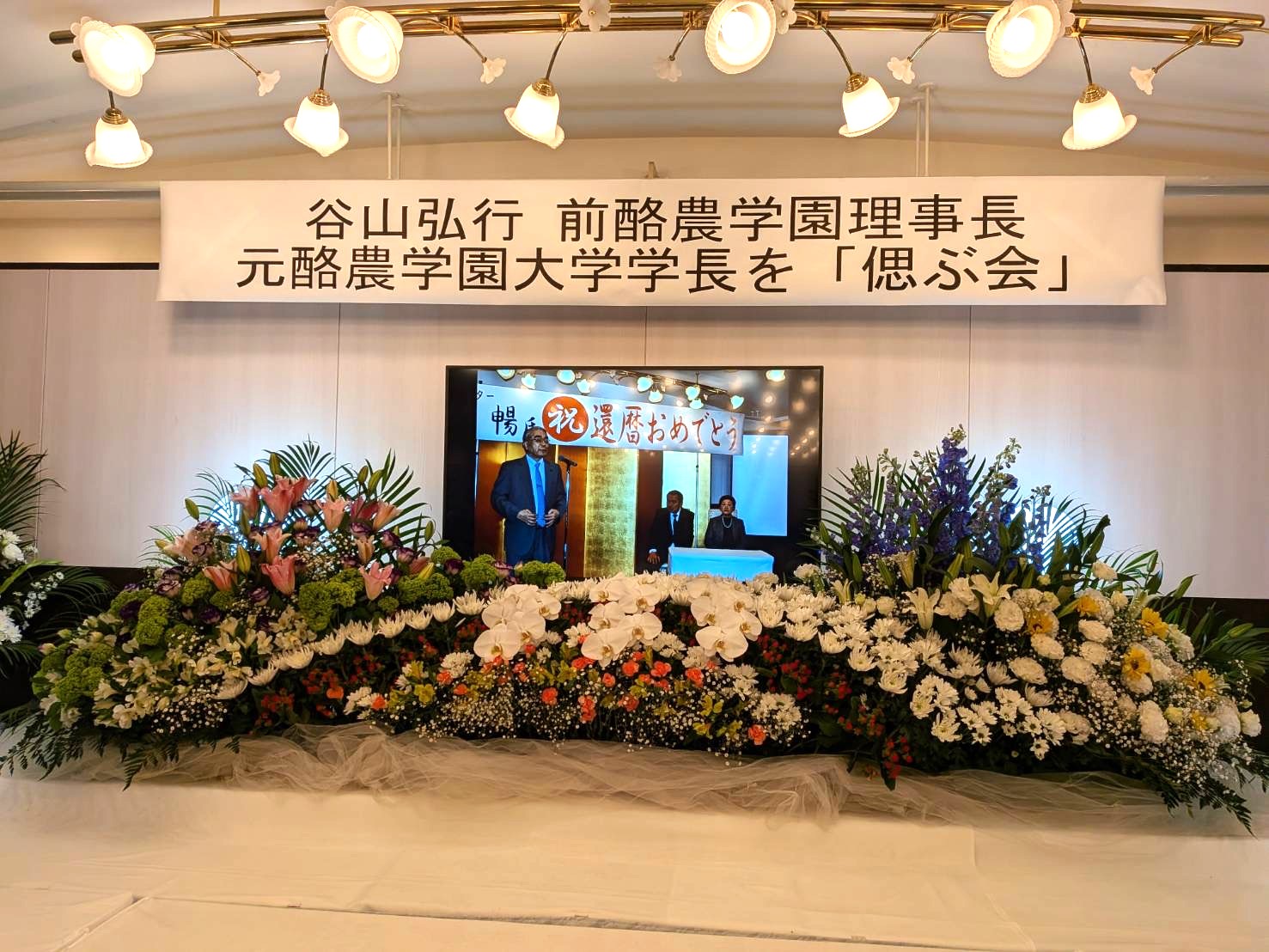 2026年3月7日16時から札幌ガーデンパレスにおいて「谷山弘行 前酪農学園理事長 元酪農学園大学学長を偲ぶ会」を開催しました。約130名の教え子、関係者、同級生等の出席を得ました。最初に開催実行委員長として中出が開催のご挨拶をさせていただきました。